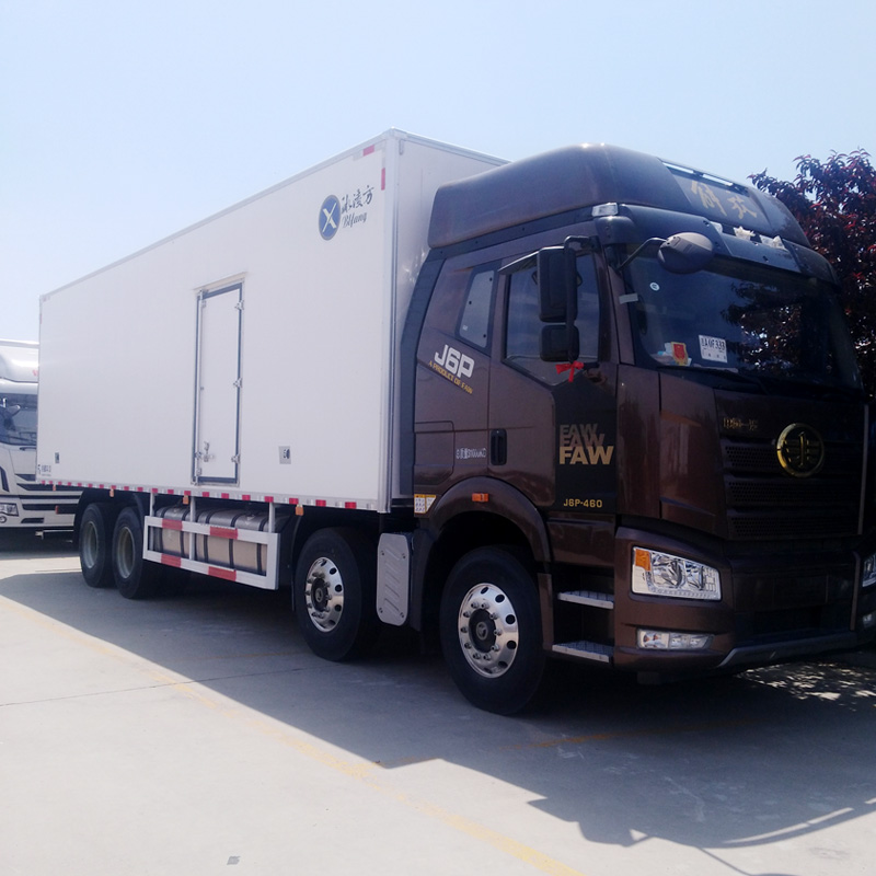 厢体采用高分子聚酯材料热压成型,采用全封闭结构。一体化的内部加强筋,极大的增加了厢板强度,高强度、高密封性胶合剂,形成一个整体,耐腐蚀性好。采用“三明治”压法,保证厢板内无空气间隙,厢体无金属冷桥,导热率低。