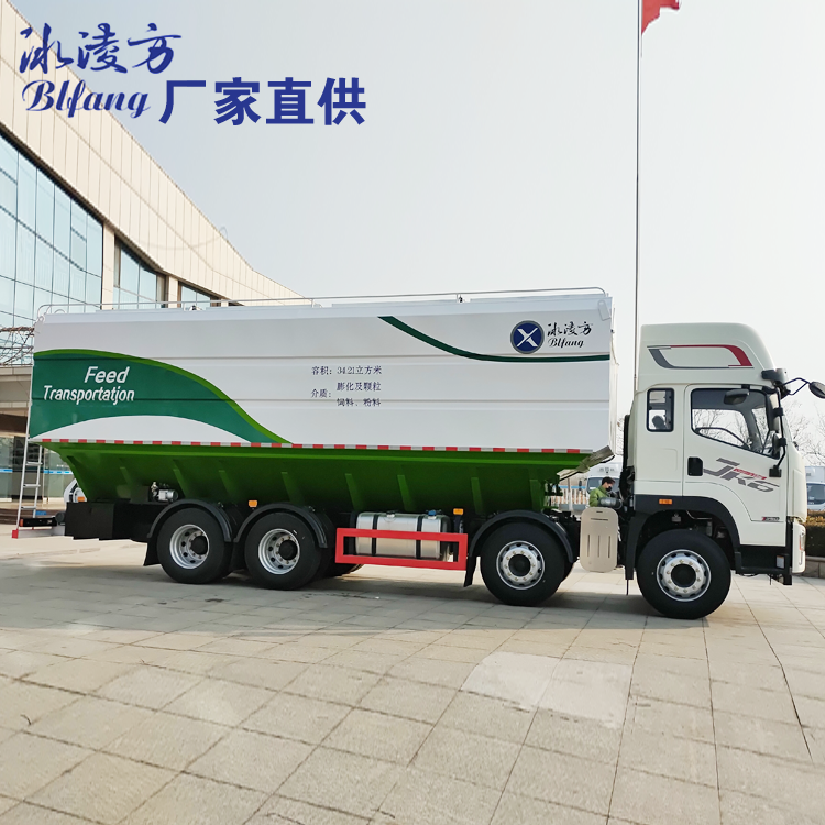 #散装饲料运输车由于饲料罐体的结构限制,饲料车重心高,转弯时易侧翻,危及生命财产安全,因此一款低重心、轻量化、可靠性强的散装饲料运输车成为畜禽饲料必备运输工具